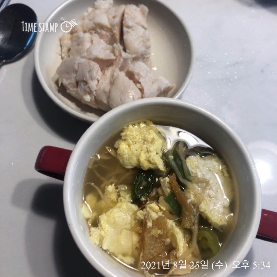 저녁은 달걀 가득 넣은 황태국과 닭찌 그리고 쌀빵 한장 ㅎㅎㅎㅎ (고만쳐먹어)ㅎ