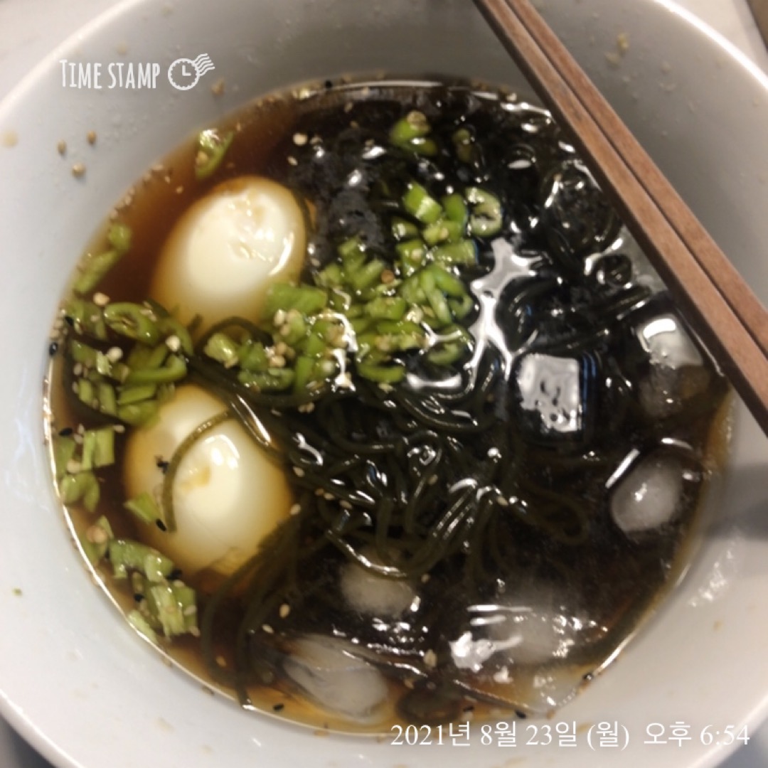 저녁에는 또 모밀국수랑 해초국수 + 달걀 2개