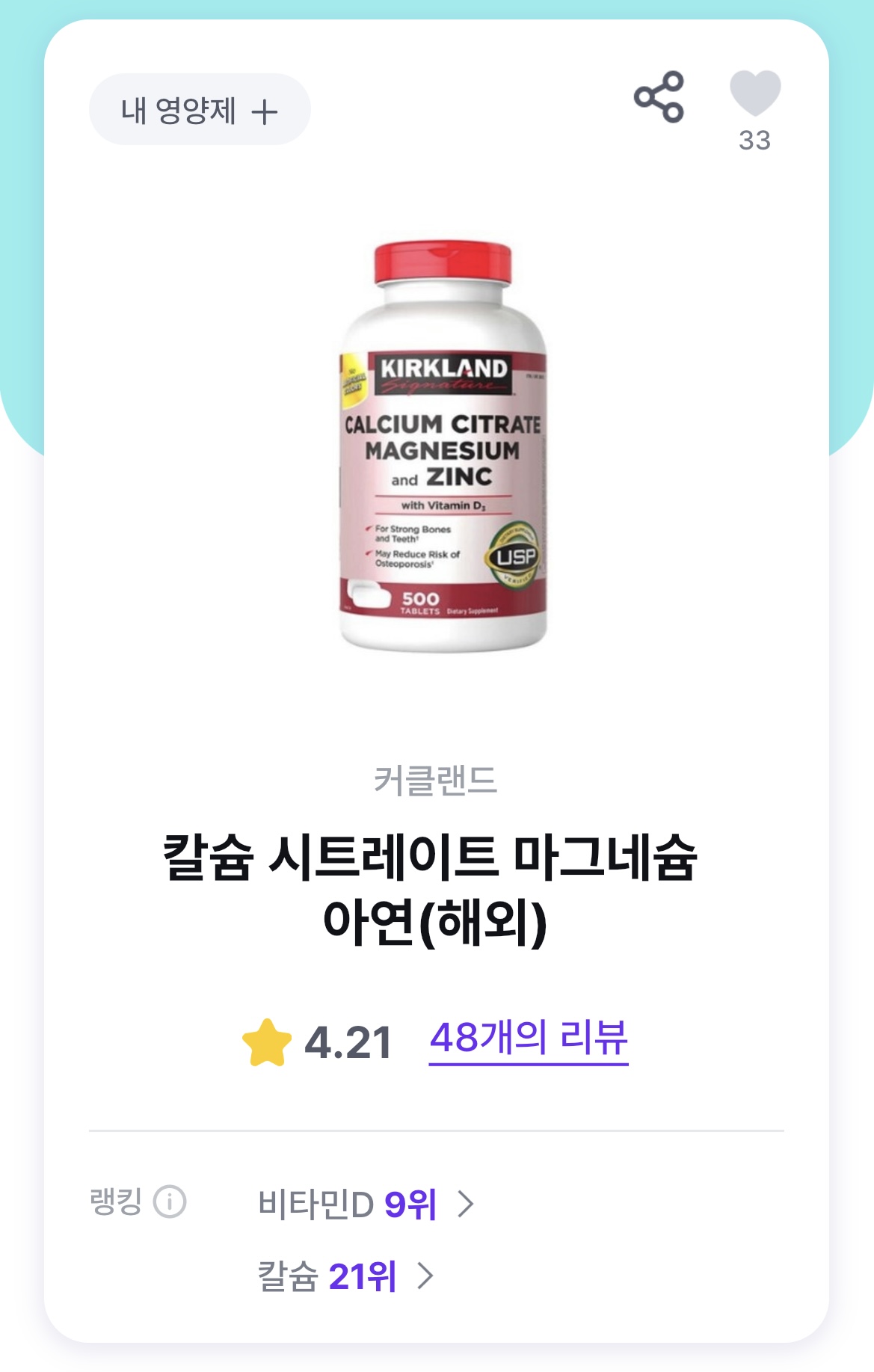 가장 아래로 내려가면 부족한 영양소를 섭취할 수 있는 제품 추천이 함께 나옵니다. 따로 제품을 찾아보지 않아도 되고, 바로바로 볼 수 있고, 제품에 대한 상세한 정보와, 다른 구매자들의 리뷰까지 볼 수 있기 때문에 굉장히 간편하고 좋은 것 같아요.