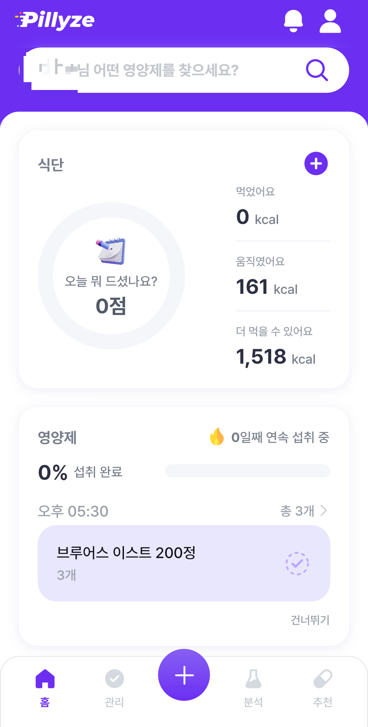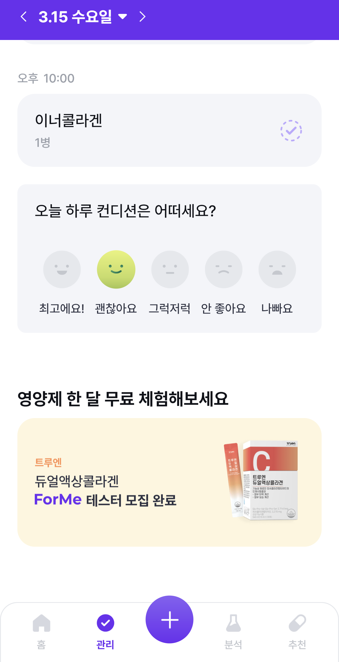 저는 설치만 해두고, 영양제 분석만 하고 섭취 입력을 안 했더니, 달력이 횡-합니다. 앞으로라도 좀 더 열심히 입력해 보도록 노력해야겠습니다.